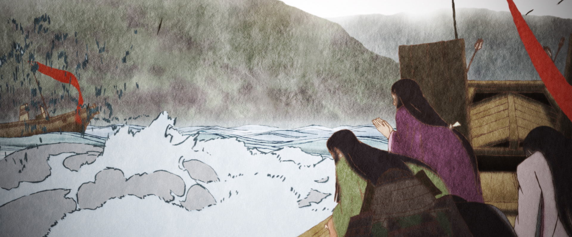 Periodo Muromachi (1336-1573). Tomona è un ragazzo che vive a Dan-no-ura, dove il tesoro dello sconfitto clan Heike giace in fondo al mare da oltre cent’anni. Un giorno, alcuni uomini della capitale chiedono a Tomona e a suo padre di salpare con la loro barca per cercare la spada Kusanagi, una delle tre “insegne imperiali” che parrebbe affondata in mare al termine della celebre battaglia. Ma assieme alla spada viene a galla anche la maledizione degli Heike che acceca il piccolo Tomona e uccide suo padre. Spinto dal tormento del fantasma del genitore, il giovane si dirige da solo verso la capitale Kyoto.
