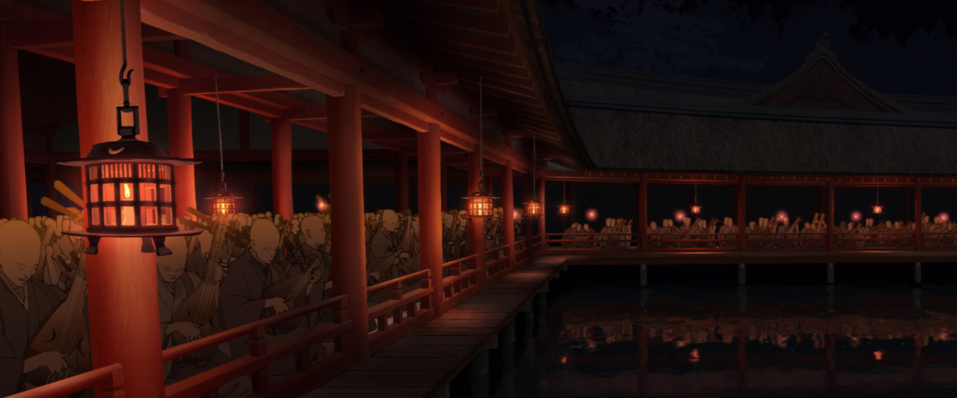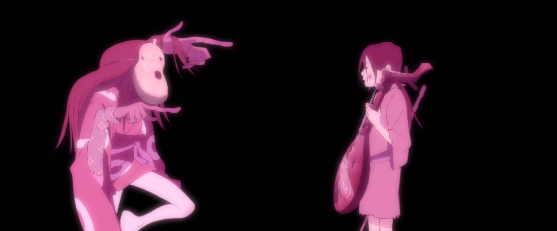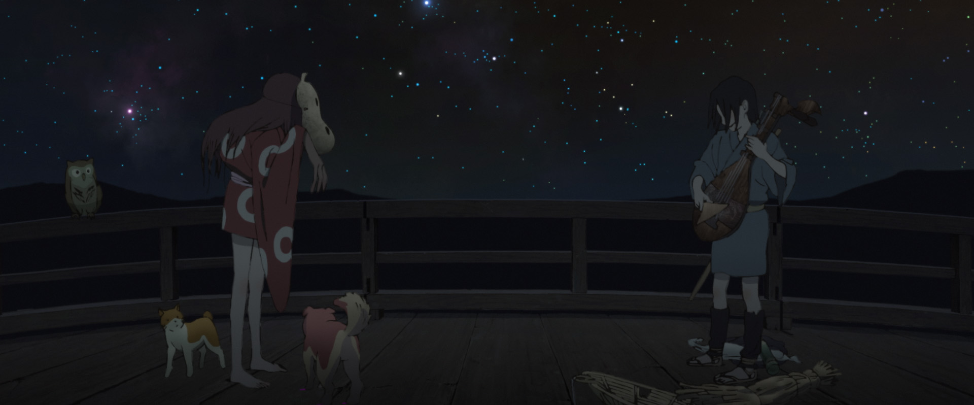 Fin dai primi istanti il film mette in chiaro la sua vocazione teatrale e musicale, offrendo poi uno scorcio del Giappone dell’epoca e narrando gli eventi con calma, immergendo poco alla volta le mani in un periodo ricco di folklore e magia. I primi eventi riescono immediatamente a lasciare a bocca aperta, guidando poi il fruitore lungo quella che sembra la strada principale del film, solo per incrociare le vie di due personaggi, dividendo così l’attenzione del pubblico su due forti personalità, il teatrante Inu-oh e il suonatore di biwa Tomona.