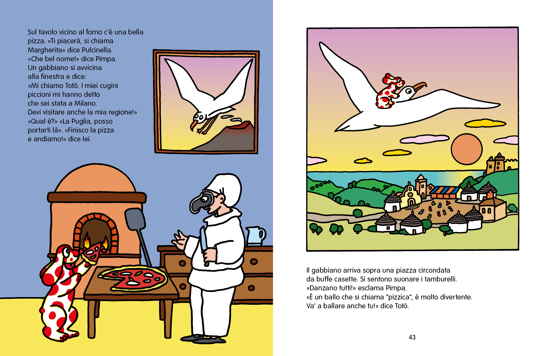Altan firma e illustra una storia inedita che unisce la narrazione alla divulgazione e ci mostra l’Italia con lo sguardo incantato ma, allo stesso tempo, attento e curioso di Pimpa: con un ritmo avvincente in un susseguirsi di scoperte e incontri ci accorgiamo di come ogni regione sia connessa all’altra.