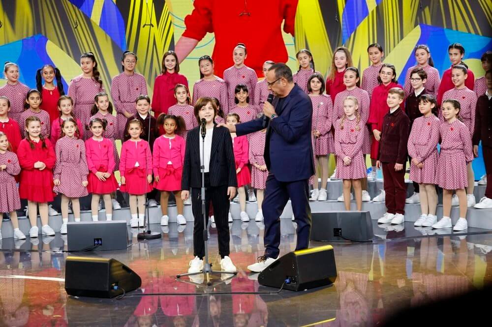 A dare voce alla canzone sul palco dell’Antoniano di Bologna, Salvatore, di 9 anni, proveniente da Napoli, accompagnato dal Piccolo Coro dell’Antoniano diretto da Sabrina Simoni.