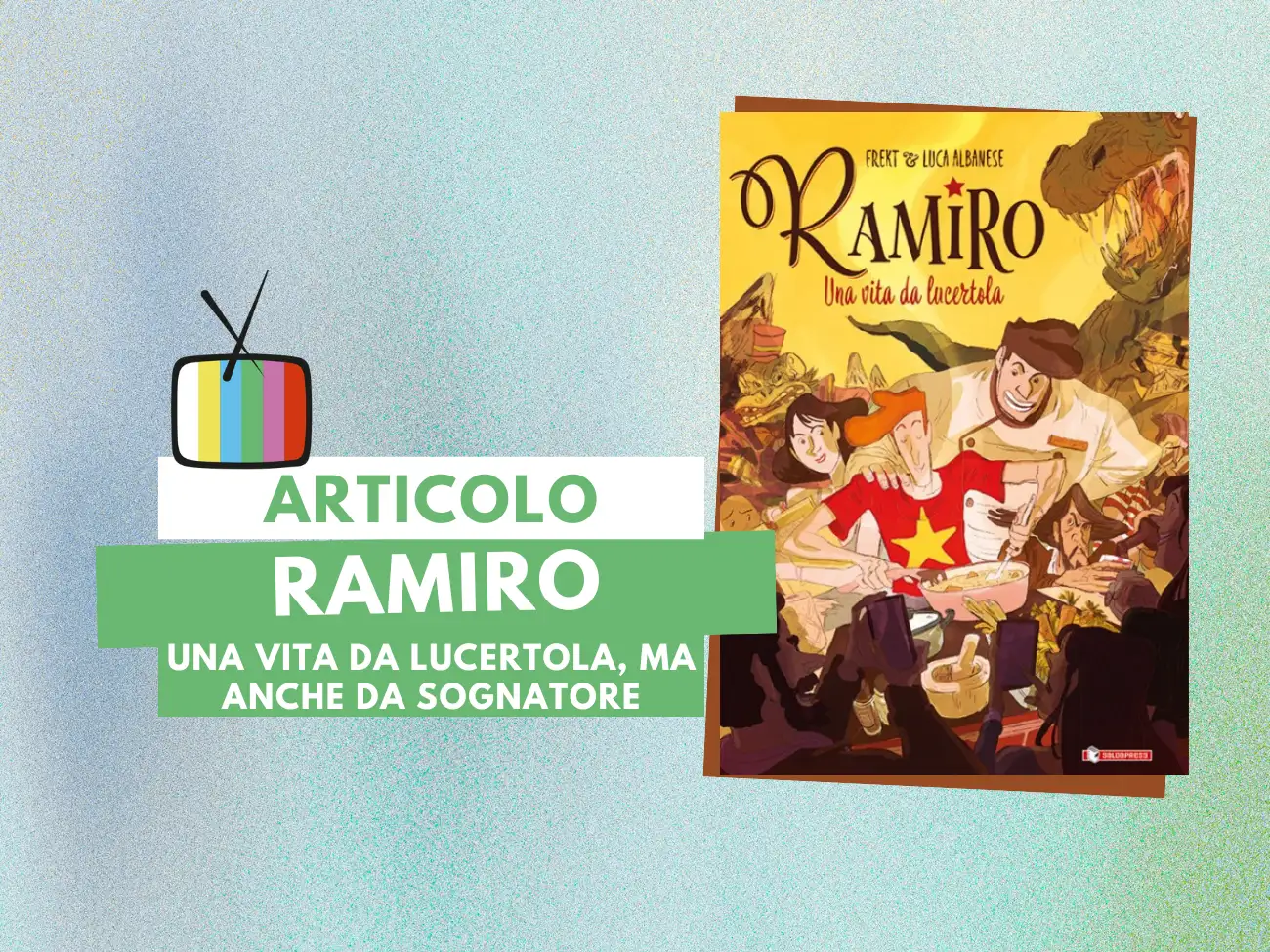 l'artwork del graphic novel Ramiro – una vita da lucertola, di Frekt e Luca Albanese, pubblicato da saldaPress (2023) nella collana Maèstro