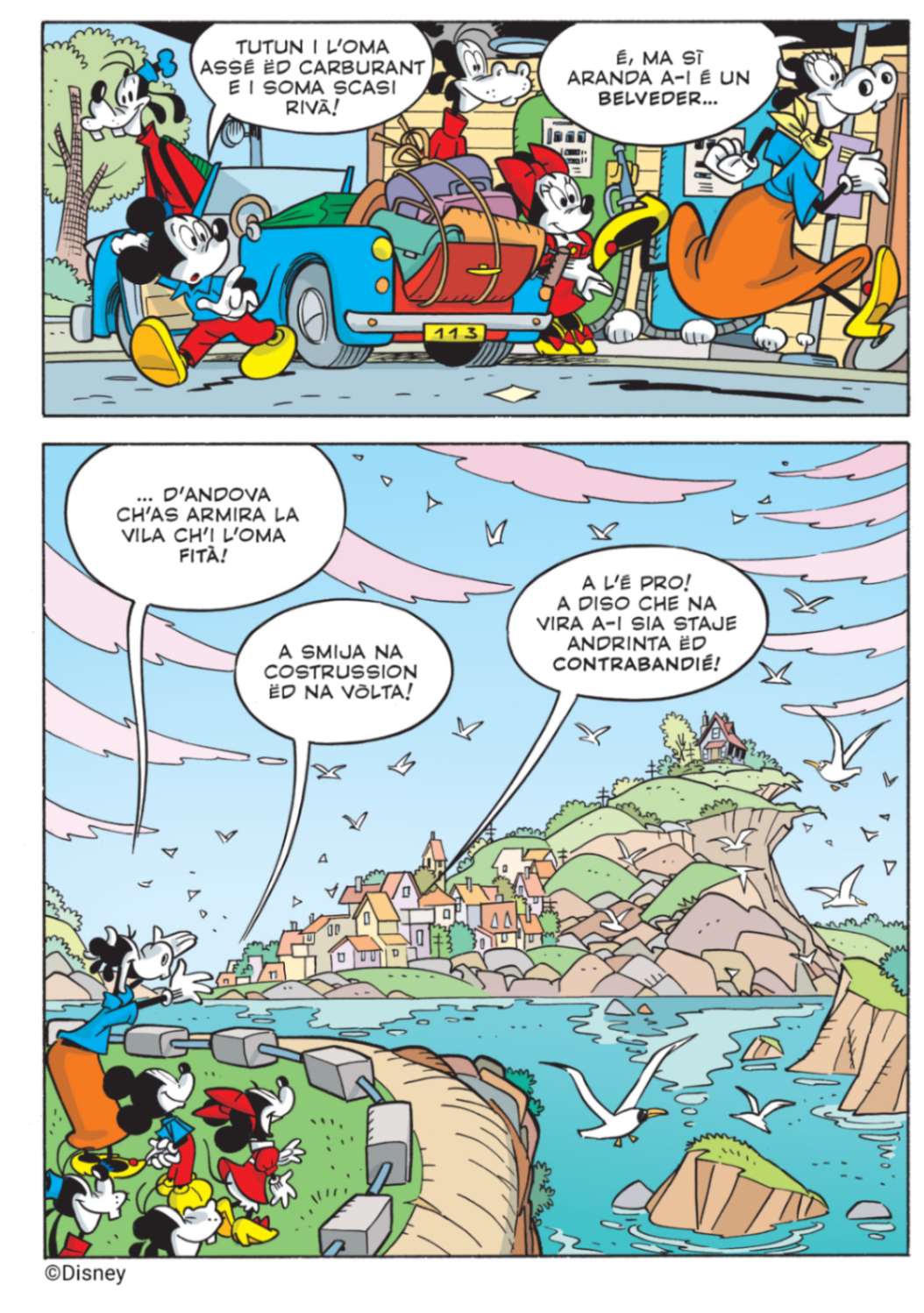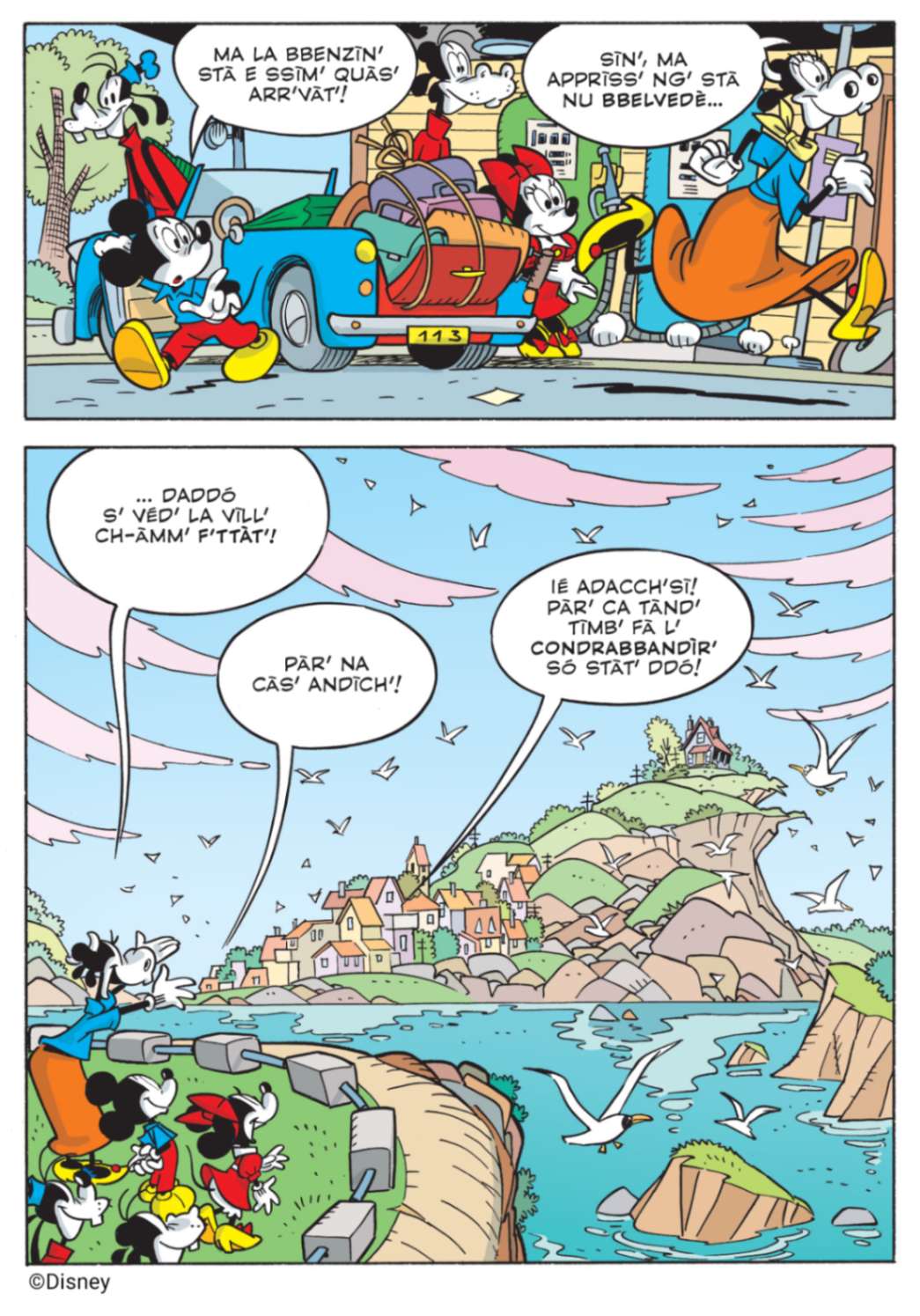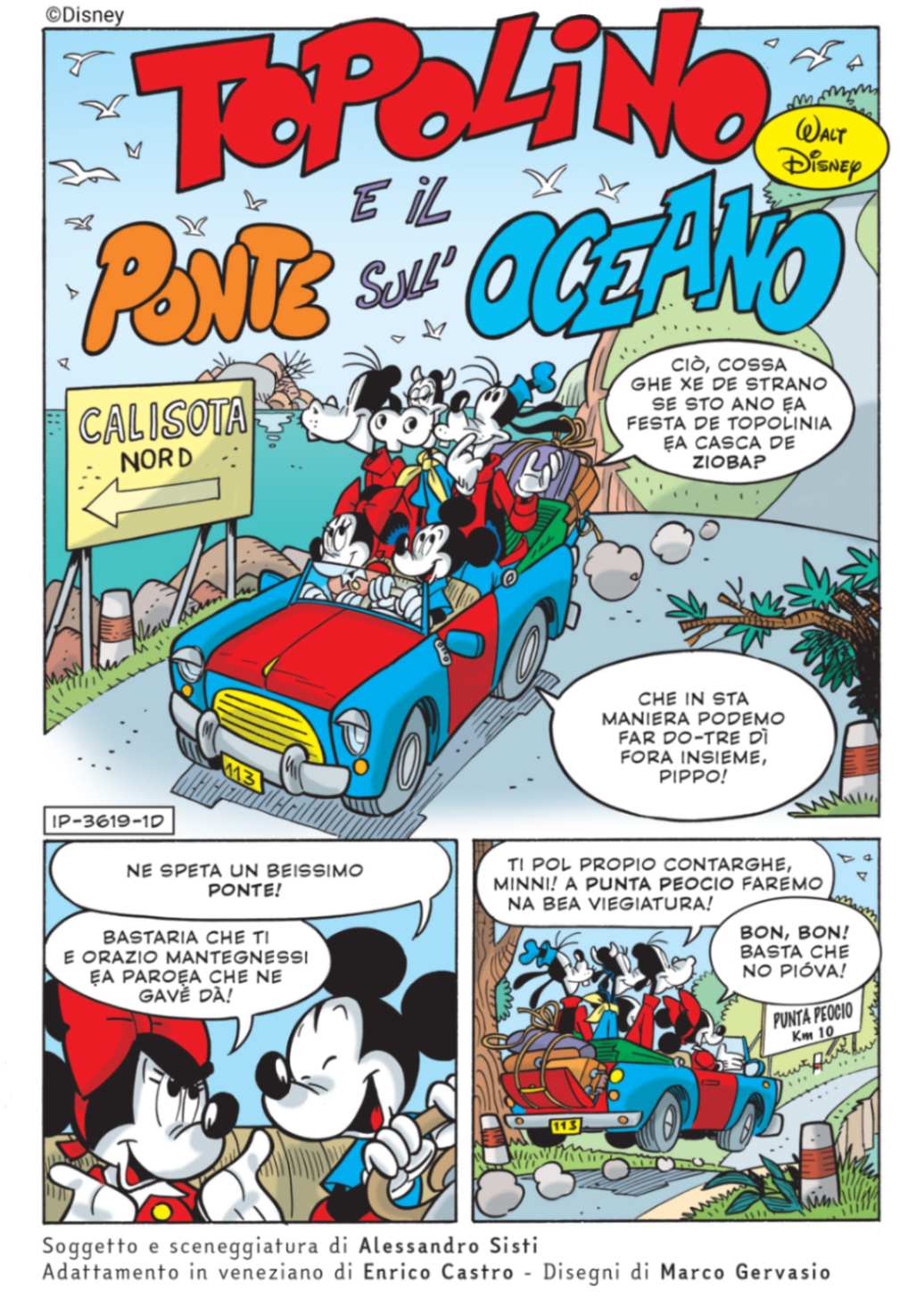 Per declinare Topolino e il ponte sull’oceano in romanesco, barese, torinese e veneziano, Panini Comics si è avvalsa nuovamente della collaborazione di Riccardo Regis – Professore ordinario di Linguistica italiana dell’Università degli Studi di Torino, esperto di dialettologia italiana – che ha coordinato un team di linguisti composto da Daniele Baglioni (romanesco), Maria Carosella (barese), Nicola Duberti (torinese) ed Enrico Castro (veneziano).