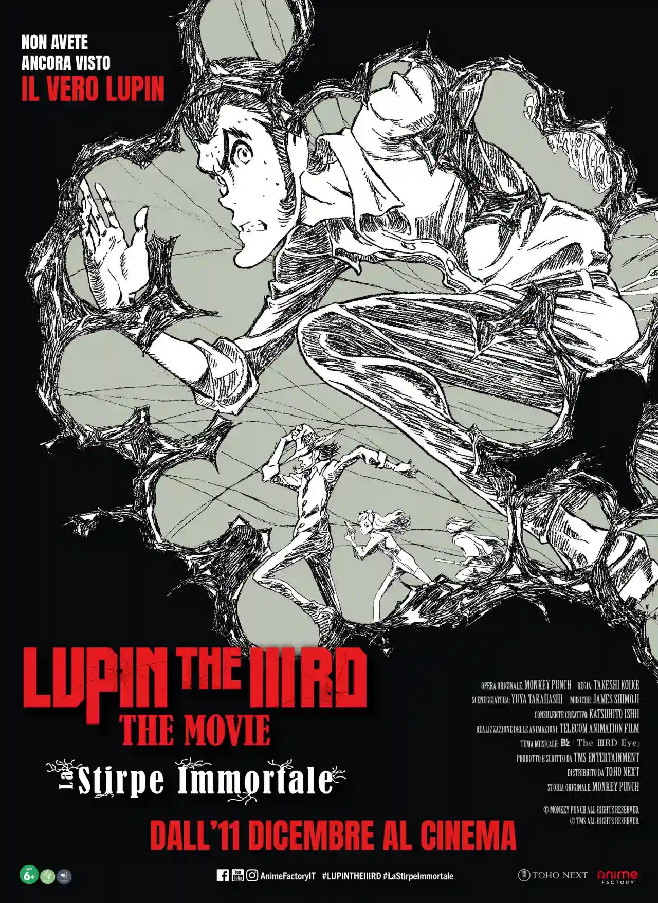 Anime Factory, etichetta di proprietà di Plaion Pictures che racchiude il meglio dell’offerta anime, è orgogliosa di annunciare l’arrivo nelle sale italiane di Lupin the IIIRD – The Movie: La Stirpe Immortale, il nuovo film diretto dal maestro Takeshi Koike (Redline, Animatrix). Dopo quasi trent’anni, il leggendario ladro gentiluomo torna protagonista di un lungometraggio animato in 2D che segna un evento atteso da generazioni di fan, un vero ritorno alle origini del mito di Lupin III e al suo spirito più autentico.